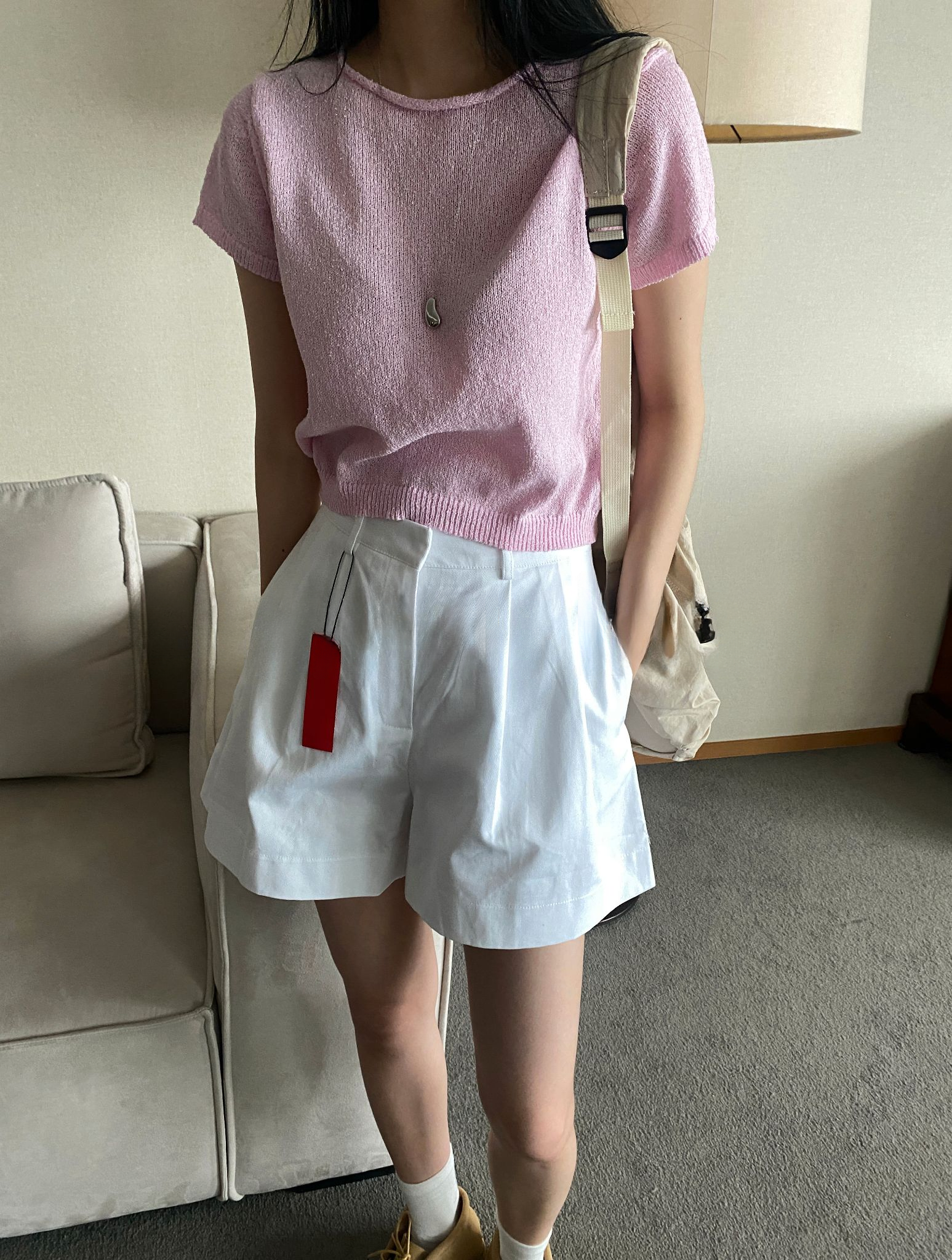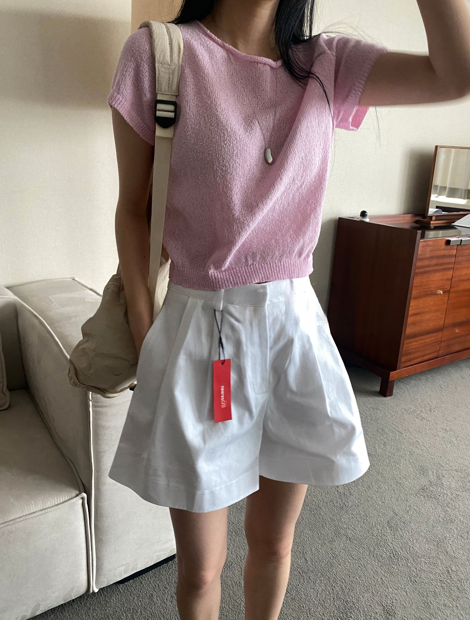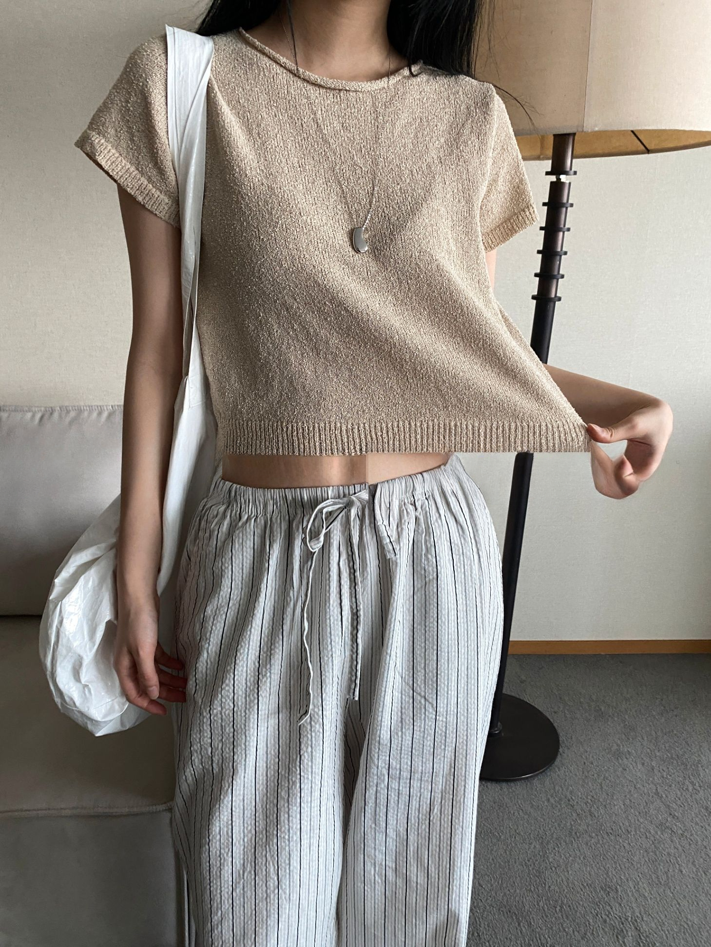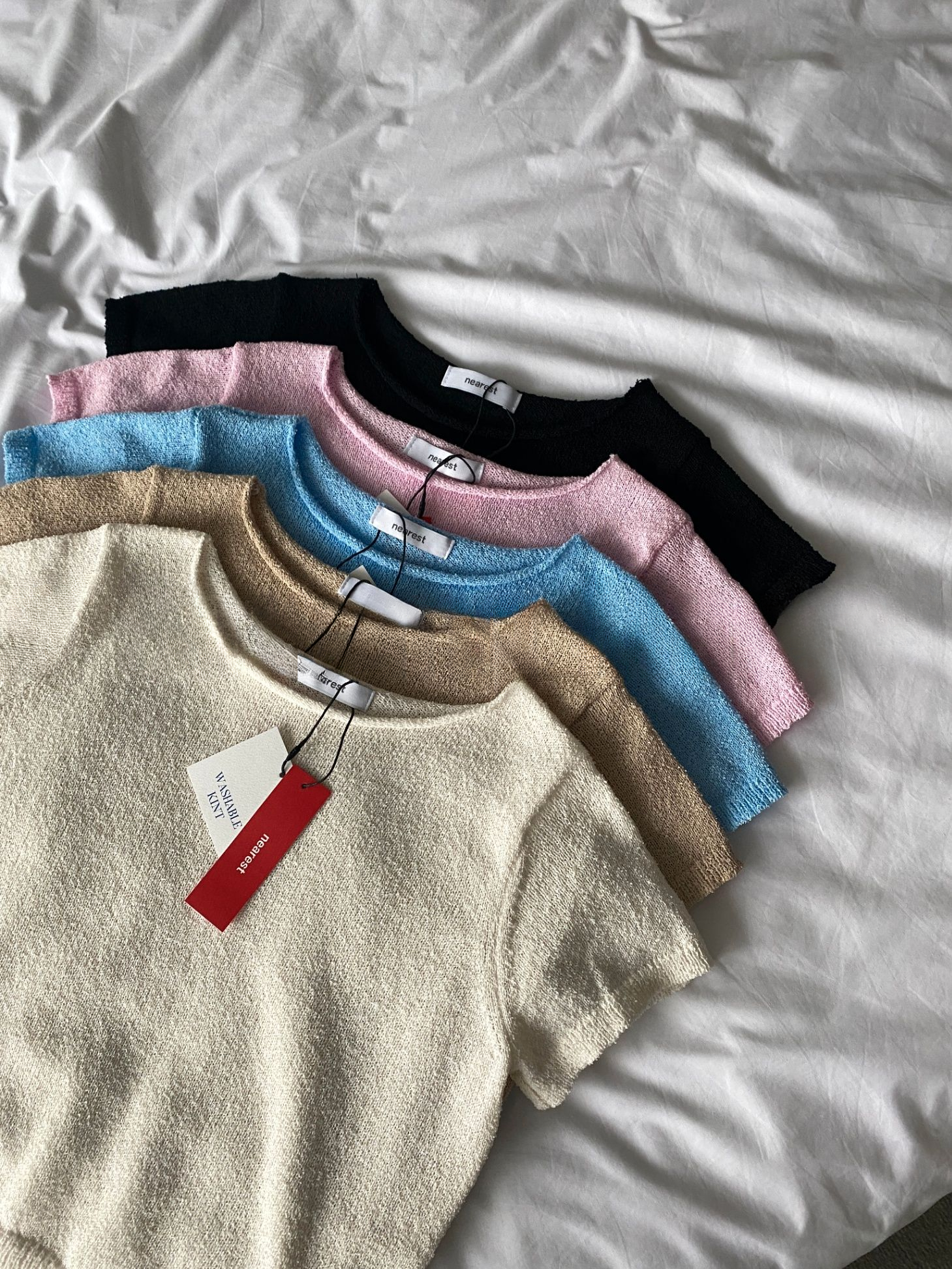 여름신상)) 부클 라운드 크롭 반팔니트 [mtzkz]