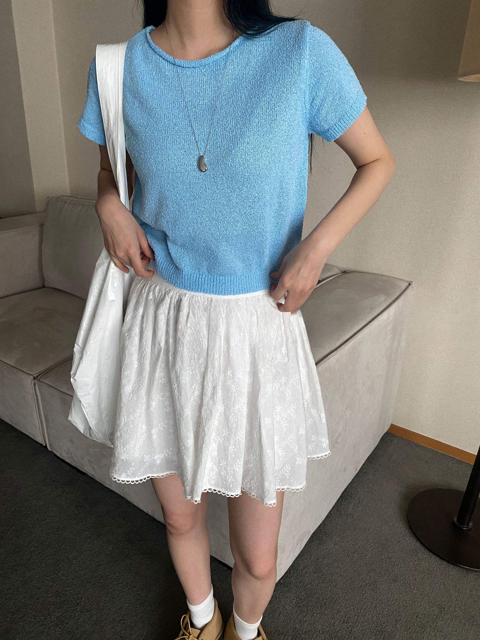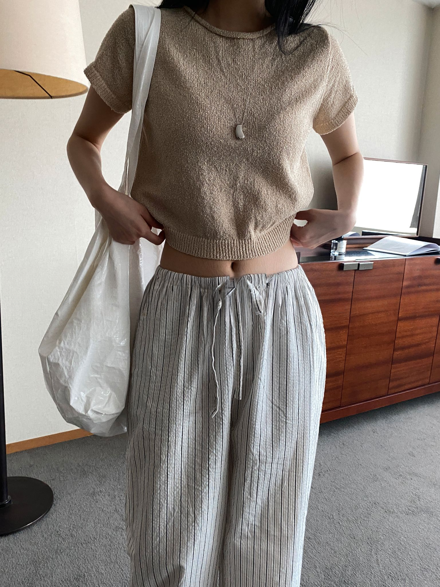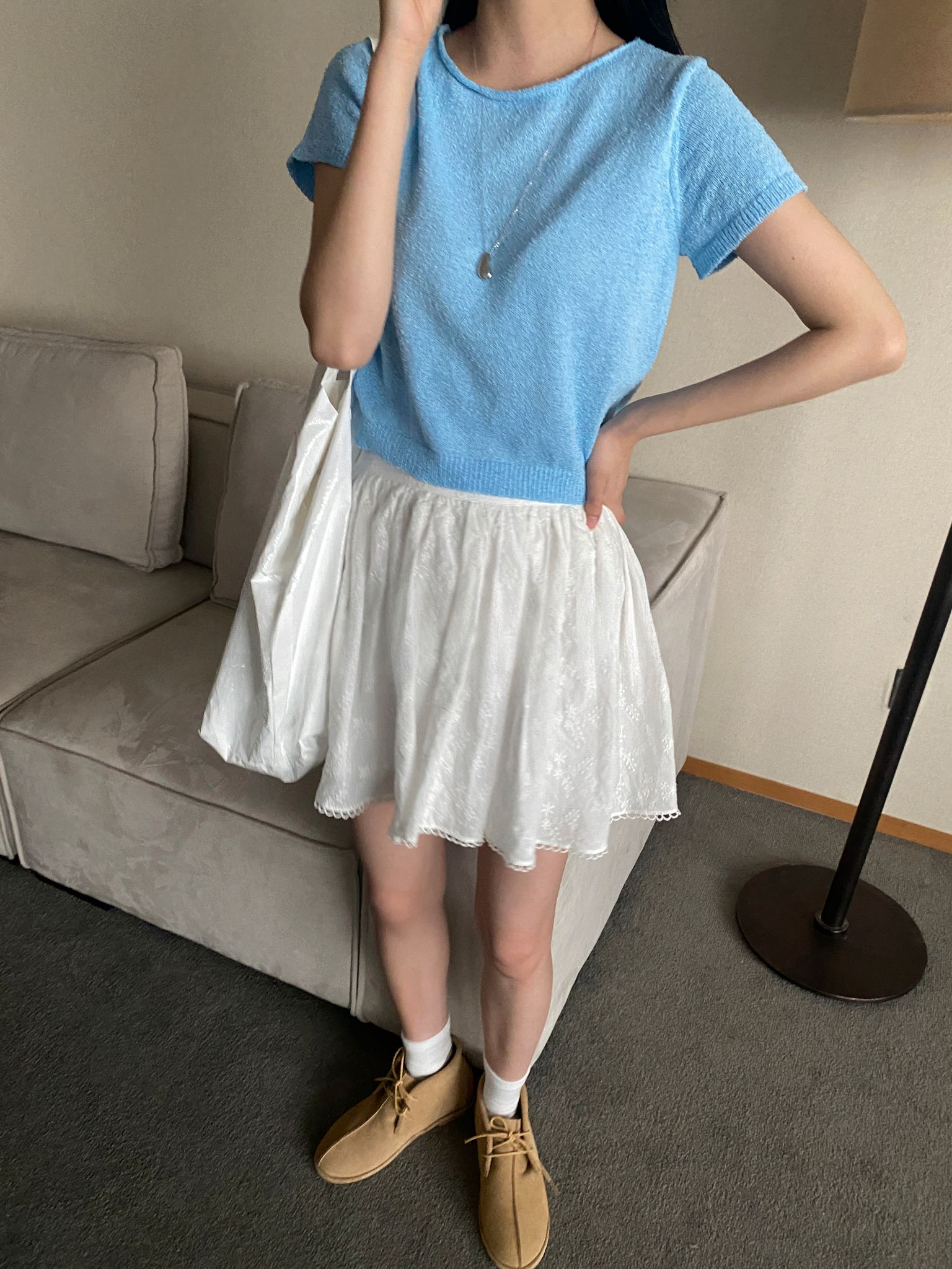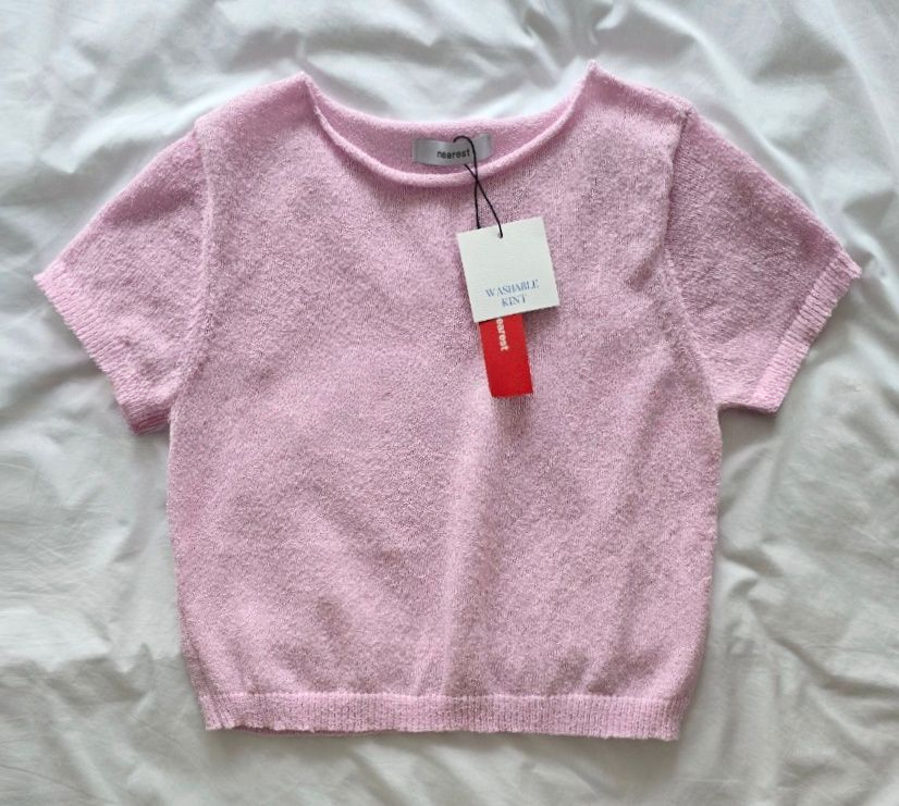 여름신상)) 부클 라운드 크롭 반팔니트 [mtzkz]