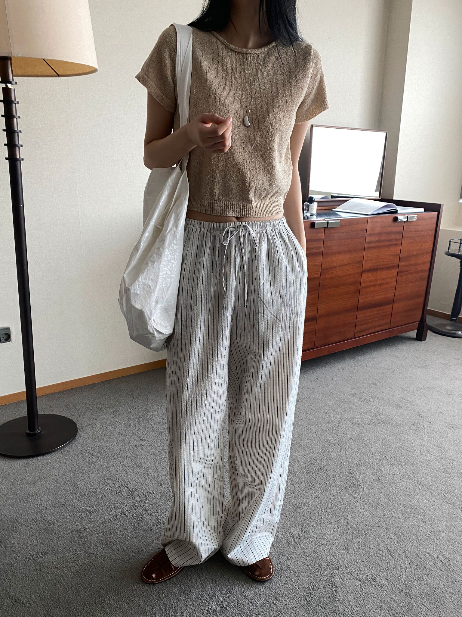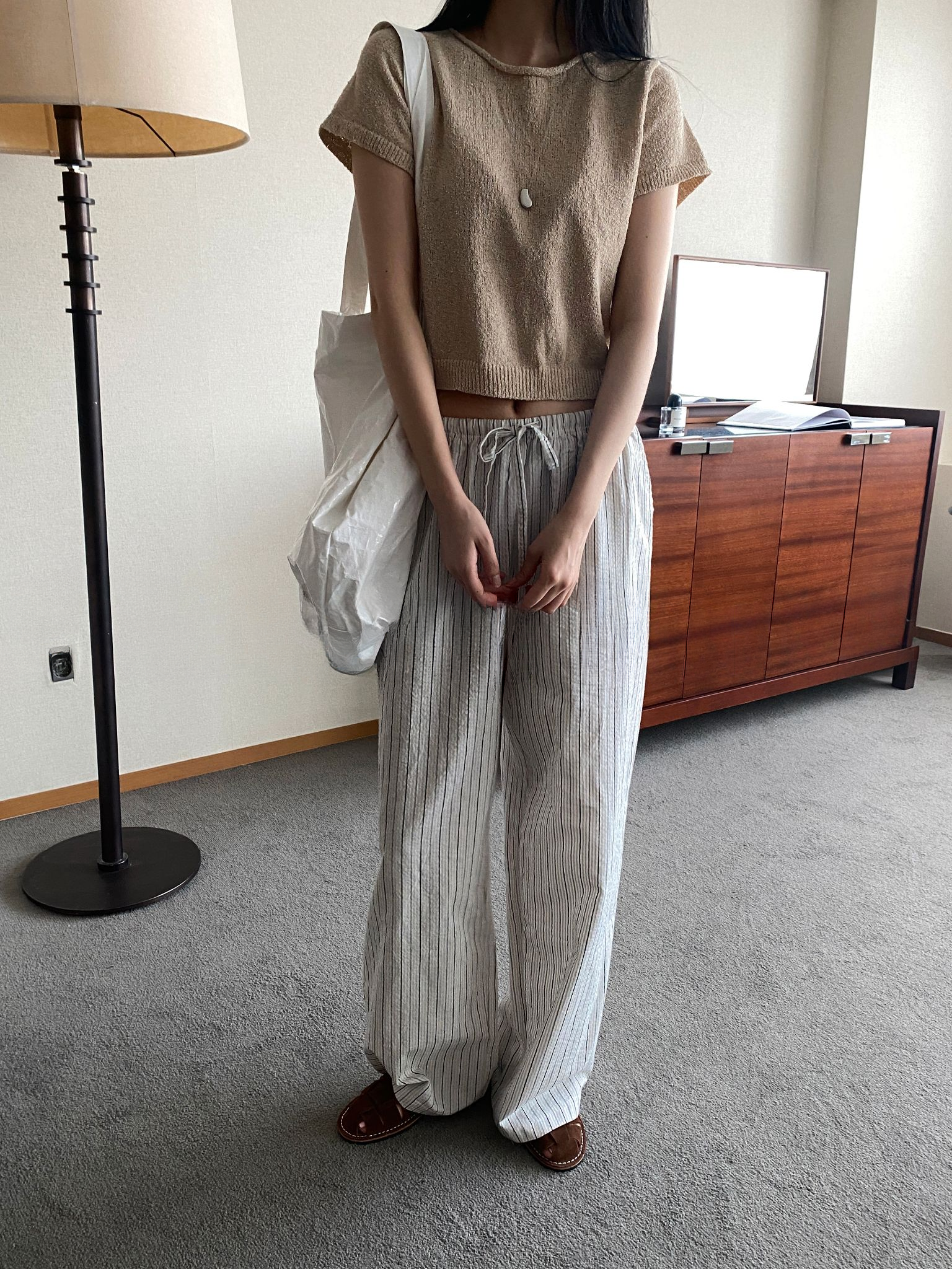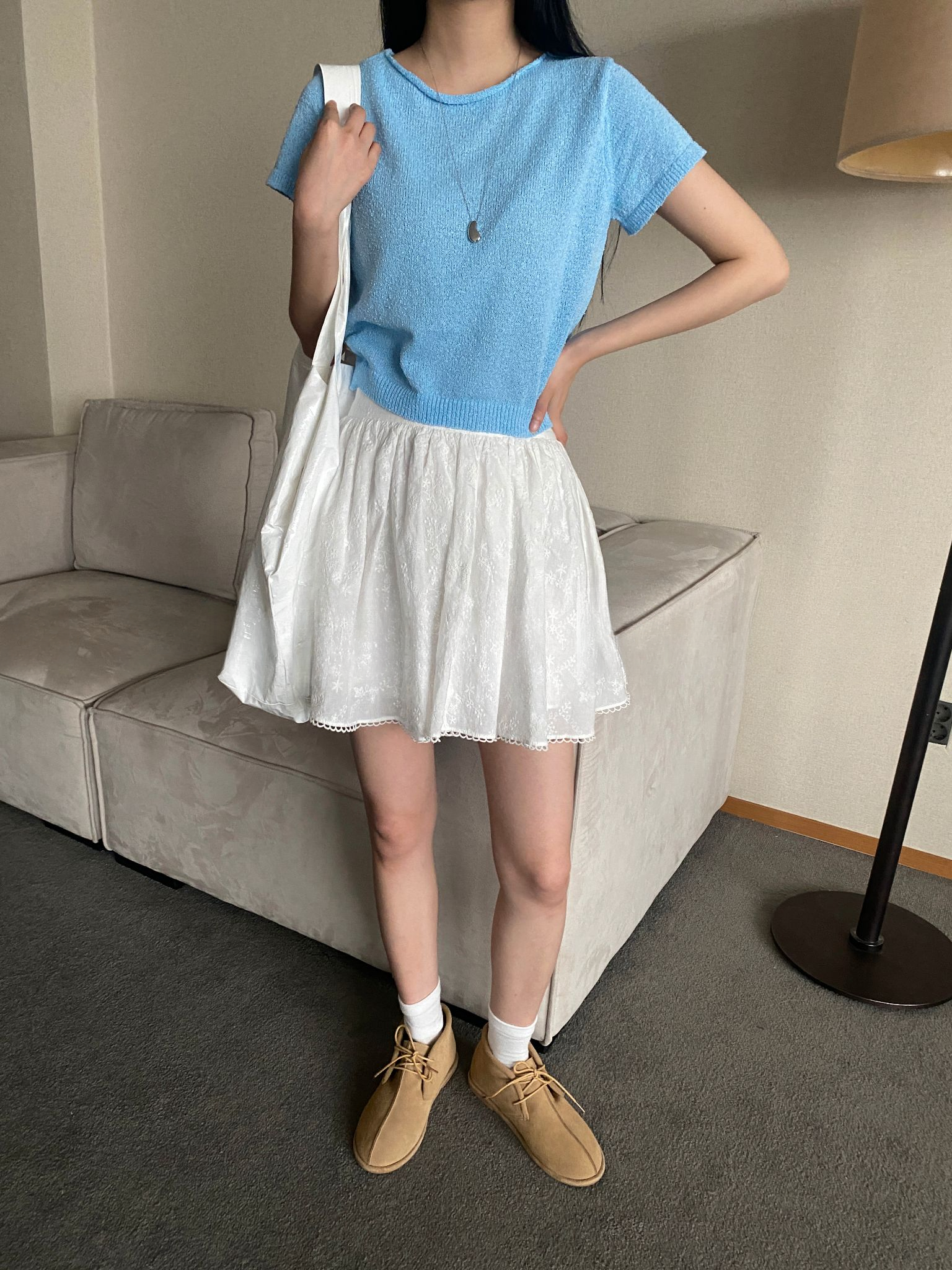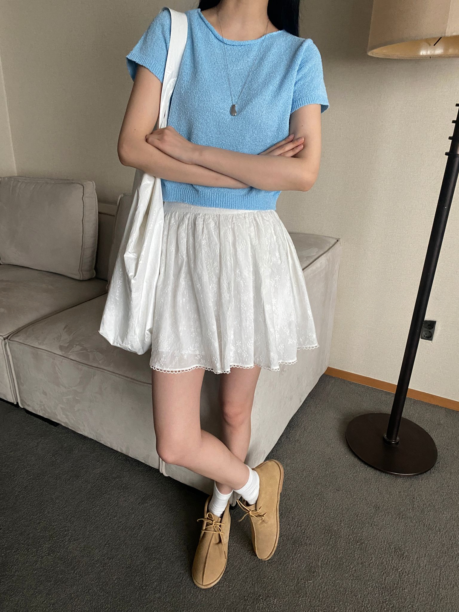 여름신상)) 부클 라운드 크롭 반팔니트 [mtzkz]